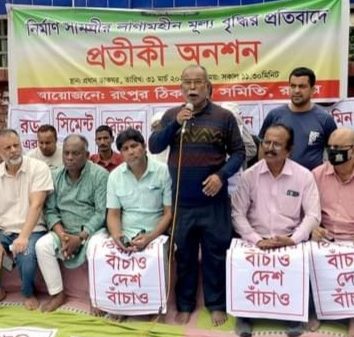 একুশেখবর.কম নিউজ ডেস্কঃ রড, সিমেন্ট,পাথর ও বিটুমিনসহ সকল প্রকার নির্মাণ সামগ্রীর লাগামহীন মুল্যবৃদ্ধির প্রতিবাদে এবং সকল সিন্ডিকেট চক্রদের বিরুদ্ধে আইনানুগ ব্যবস্থা গ্রহনের দাবীতে বৃহস্পতিবার রংপুর জেলা প্রশাসকের কার্যালয়ের সামনে “রংপুর ঠিকাদার সমিতির” প্রতিকী অনশনে একাত্মতা প্রকাশ করেছেন