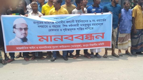 একুশেখবর.কম-নিউজ ডেস্কঃ বহুল আলোচিত-সমালোচিত রংপুরের মসজিদের পেস ইমাম কৃর্তৃক সারে তিন চার বছরের শিশু ধর্ষন মামলার আসামীর উপযুক্ত বিচার চেয়ে শিশু টির পরিবার সহ কয়েকটি মানবাধিকার সংস্থা ও এলাকাবাসী রংপুর নগরীর মাহীগঞ্জ মেট্রো পলিটন থানা এলাকার ১ নং