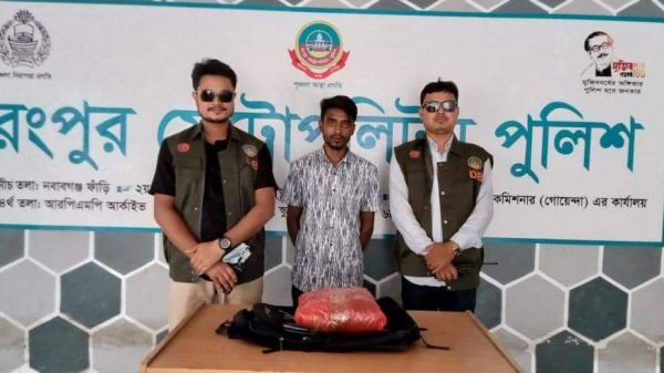 জুয়েল ইসলাম-নিজস্ব প্রতিবেদকঃ রংপুরে ০২ (দুই) কেজি শুকনা গাঁজাসহ মোঃ হাসান আকন্দ নামের এক মাদক ব্যবসায়ীকে গ্রেফতারের খবর পাওয়া গেছে। অদ্য ১৮/০৫/২০২২খ্রি. ১৭.৩০ ঘটিকায় গোপন সংবাদের ভিত্তিতে রংপুর কোতয়ালী থানাধীন নিউসেন পাড়া মসজিদ সংলগ্ন সামিনা মেটাল ওয়ার্কসপ এর