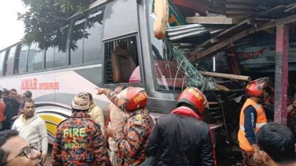 রাকিবুল ইসলাম লিমন-সদর উপজেলা প্রতিনিধি কুরিগ্রামঃ কুড়িগ্রাম সদর থেকে ঢাকাগামী ‘আমার এন্টারপ্রাইজ’ এর একটি বাস নিয়ন্ত্রণ হারালে, দুজনের মৃত্যু হয়েছে। অদ্য শনিবার সকাল ৯টার দিকে উপজেলার ত্রিমোহনী বাজার মোড় এলাকায় এ দুর্ঘটনাটি ঘটে। প্রত্যক্ষদর্শী ও থানা-পুলিশের সঙ্গে কথা