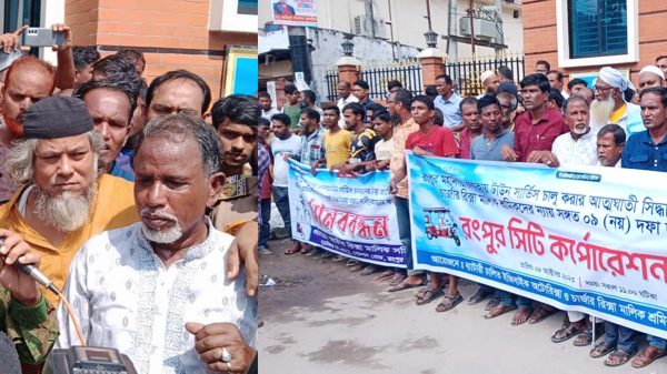সিটিবাস সার্ভিস চালুর সিদ্ধান্ত প্রত্যাহার দাবীতে ব্যাটারী চালিত ইজিবাইক অটো ও চার্জার রিক্সা মালিক শ্রমিকদের রংপুর সিটি কর্পোরেশন ঘেরাও কর্মসুচি-একুশেখবর.কম
